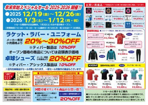 「年末年始スペシャルセール2025-2026」のご案内