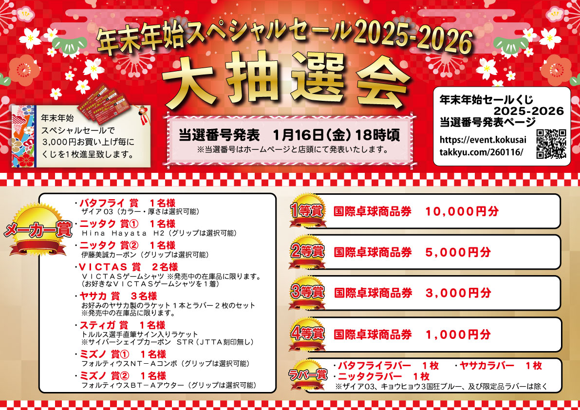 他にもラケット・ラバーも当たるメーカー賞もあります!